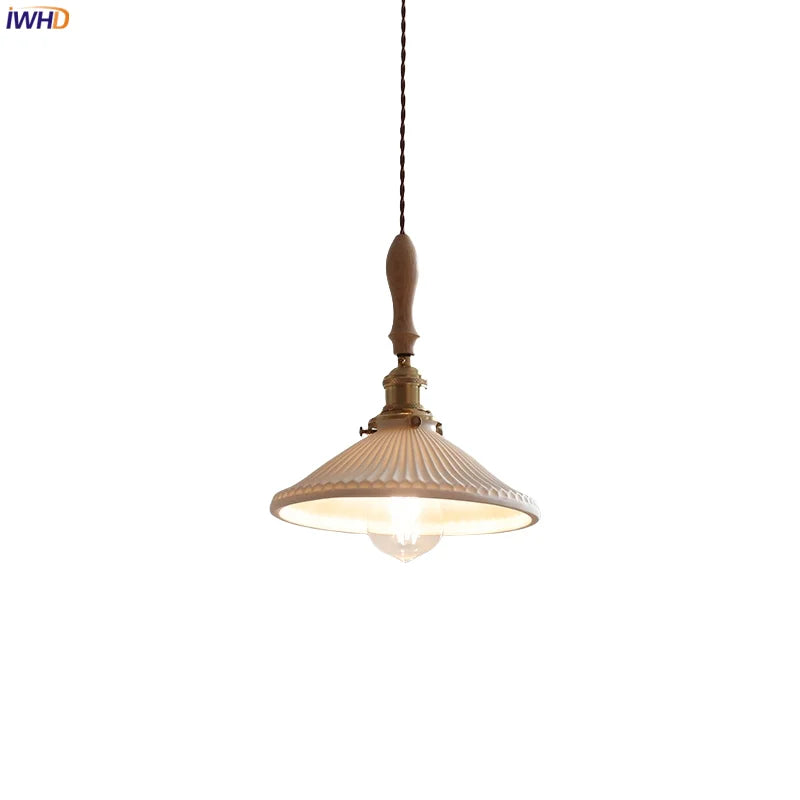 Helnys Ceramic LED Pendant Lamp with Wood Handle and Copper Socket