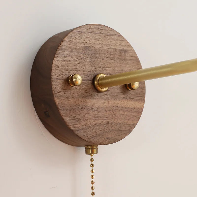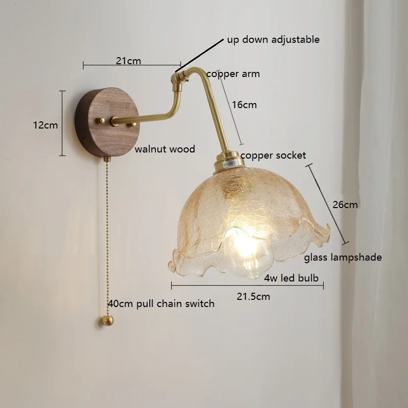 Introducing our exquisite Helnys Green Glass Copper LED Wall Lamp with Pull Chain Switch and Walnut Wood Base, designed to elevate your living space with its elegant and modern appeal.