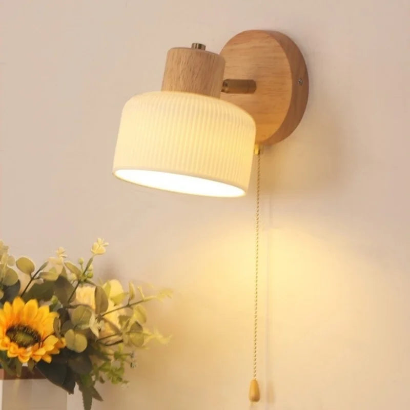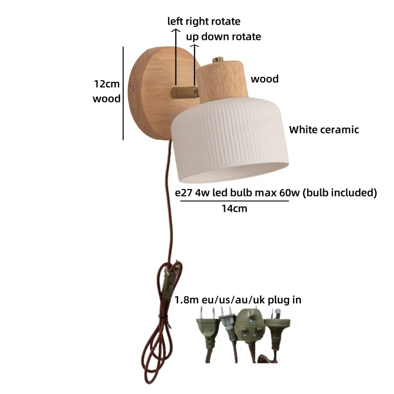 Helnys Japanese Style LED Wall Light Fixture Ceramic Wood Bedside Lamp