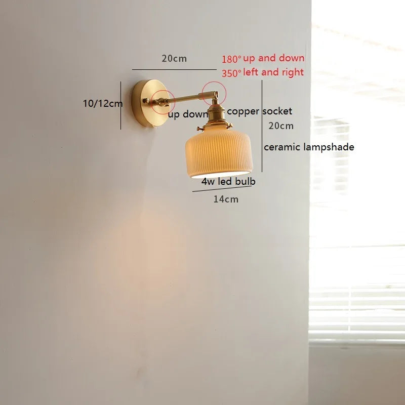 Crafted from high-quality copper material, this wall lamp boasts durability and style. The ceramic shade adds a unique touch to the design, while the gold and white color options complement a variety of decor styles.