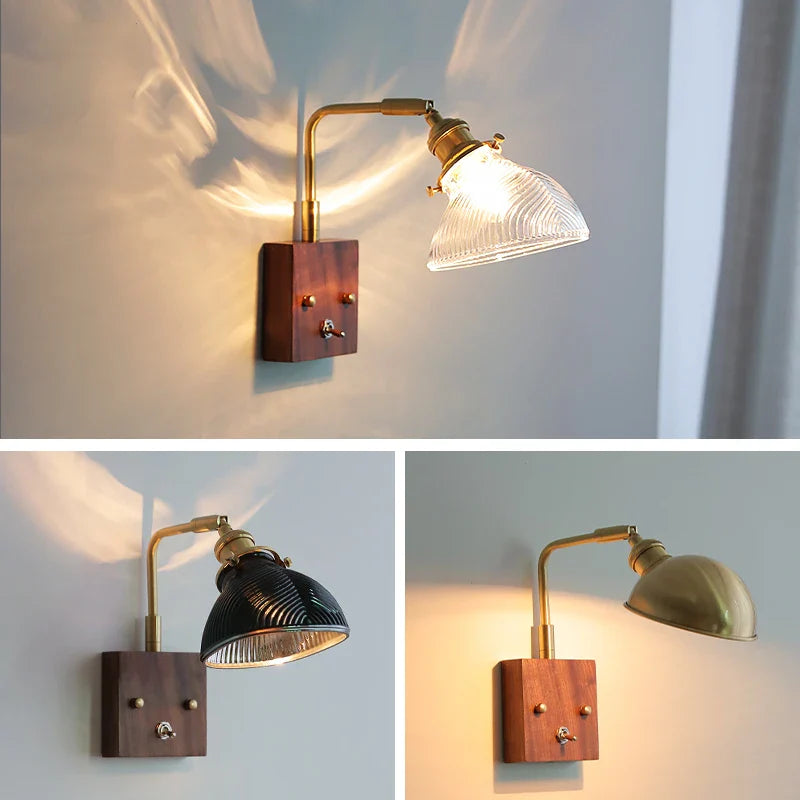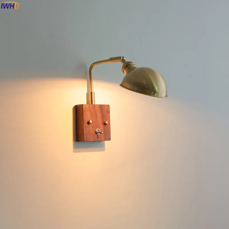 Helnys Nordic Copper Wall Sconce LED Light with Wood Canopy