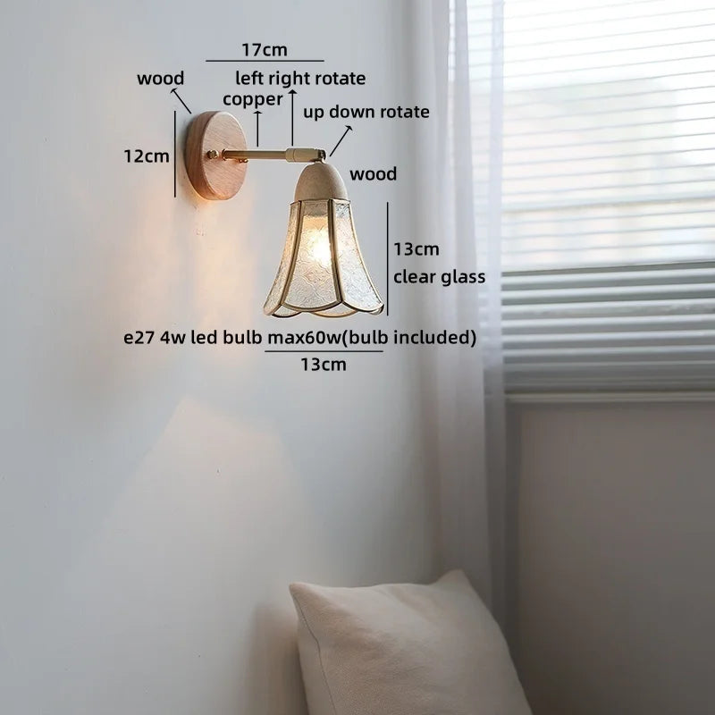 Constructed with a wood canopy and glass body, this wall lamp exudes a modern charm that complements any decor style. The plated technics add a touch of sophistication, making it a perfect fit for daily lighting needs.