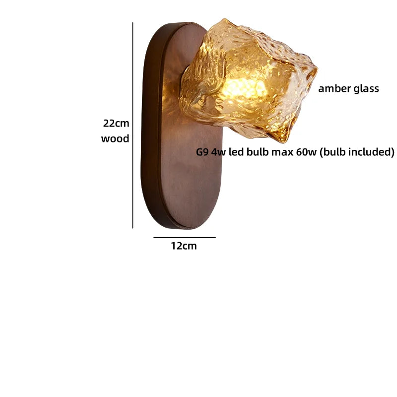Helnys Vintage Amber Glass LED Wall Lamp, Bedroom Retro Design