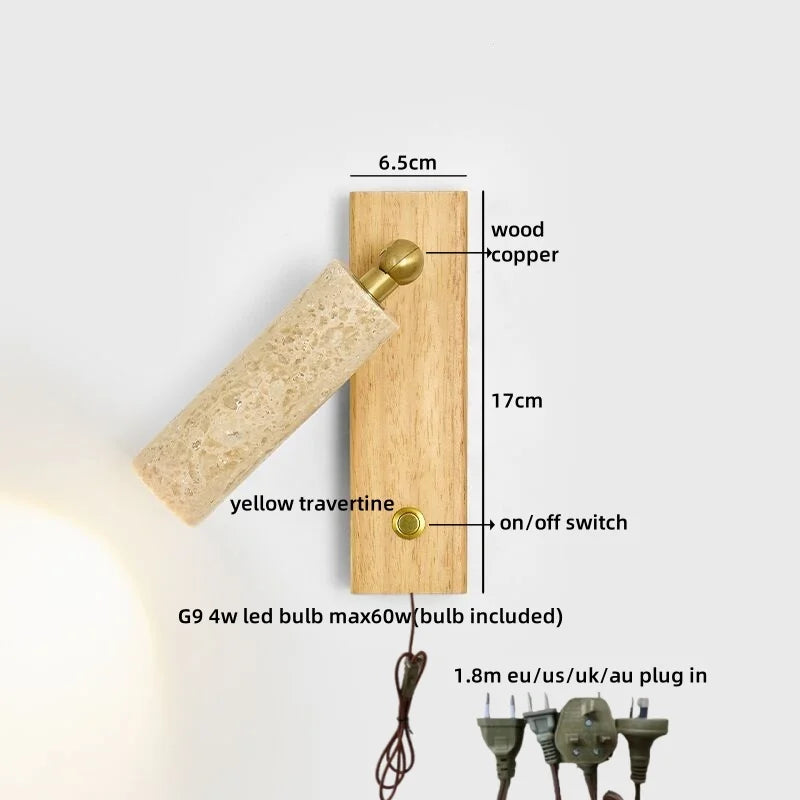 Helnys Wood Canopy LED Wall Sconce Yellow Stone Nordic Modern Makeup Mirror Light