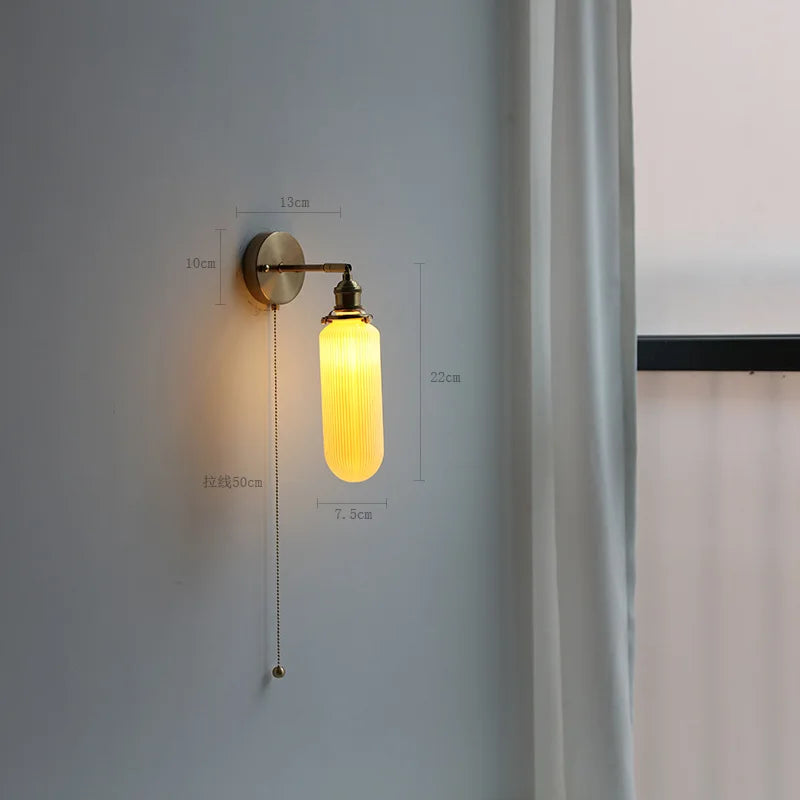 Illuminate your living space with the elegant Helnys Copper LED Wall Light with Pull Chain Switch. This exquisite wall light is the perfect addition to any room in your home, whether it be the kitchen, dining room, bedroom, foyer, study, or bathroom.