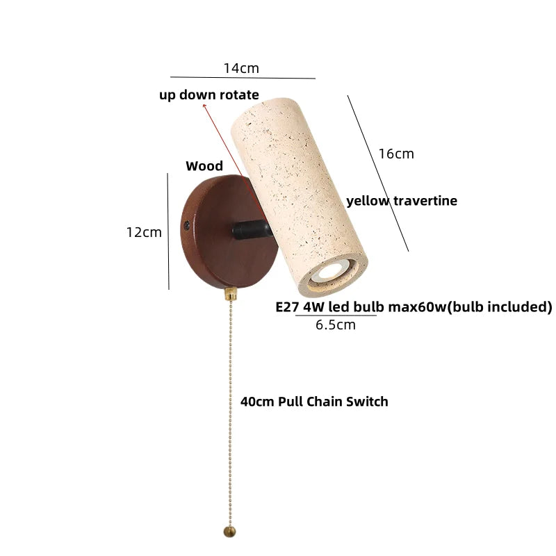 Helnys Nordic Wood LED Wall Sconce Yellow Travertine Stone Modern Rotate Bedside Lamp