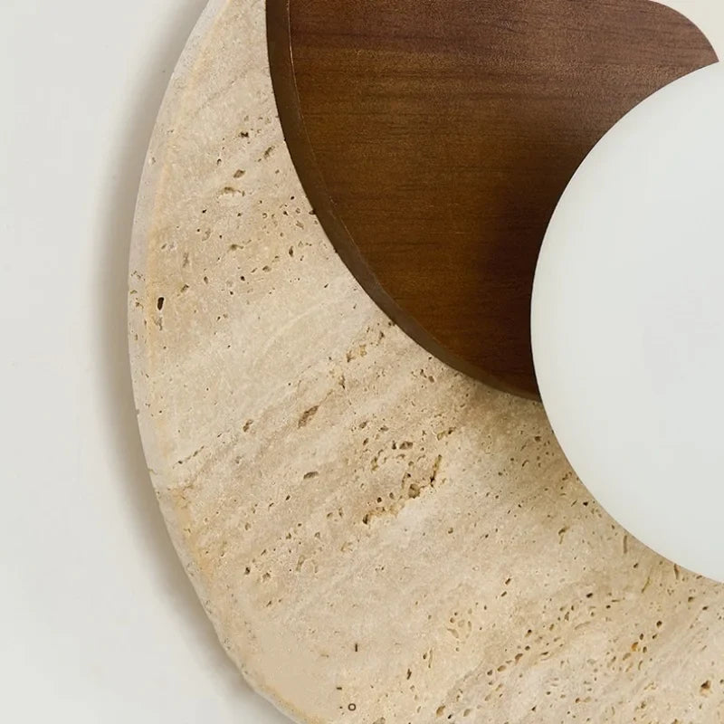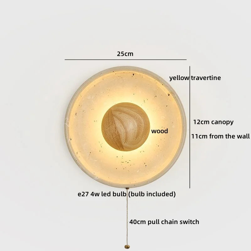 Elevate your home decor with the Helnys Round LED Wall Lamp in Yellow Travertine Wood and experience the perfect blend of style and functionality in one stunning lighting fixture.