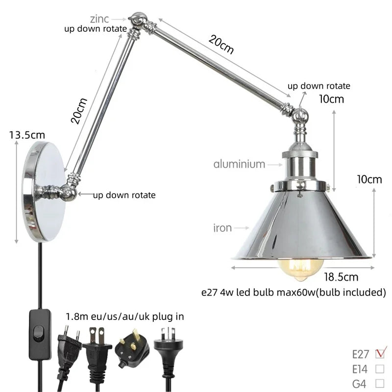 Helnys Vintage White LED Wall Sconce with Pull Chain Switch