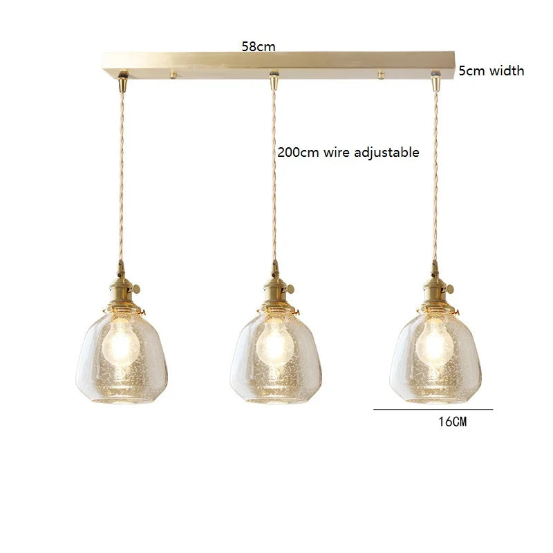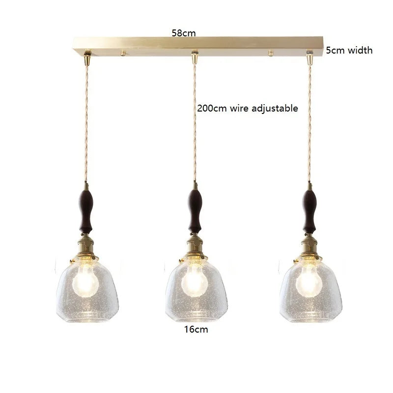 Helnys Wood LED Pendant Lamp Nordic Copper Glass Hanging Light