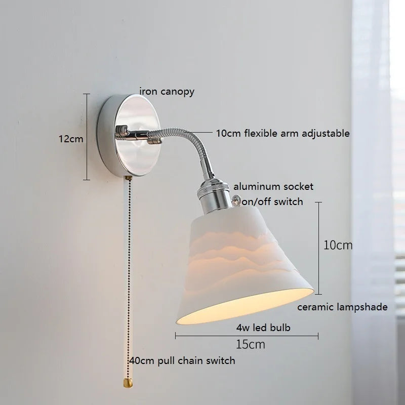 Helnys Adjustable Arm LED Wall Sconce White Glass Ball Mirror Stair Light