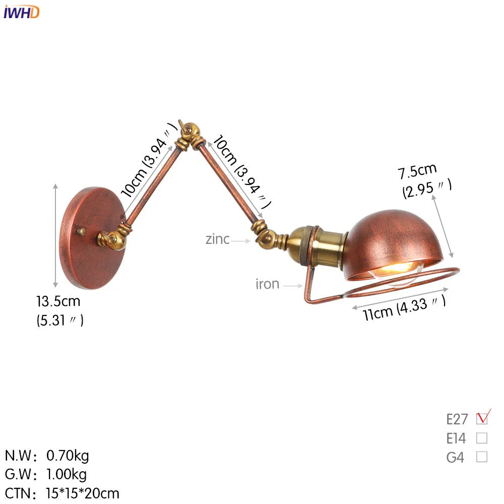 Helnys Antique Black Wall Lamp Vintage Industrial Sconce LED Applique Murale