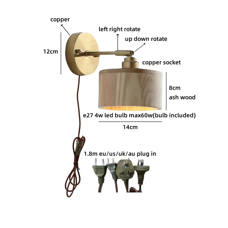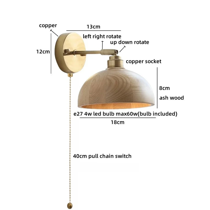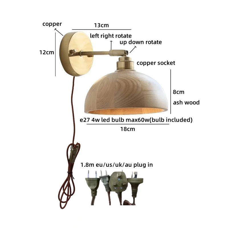 Helnys Ash Wood LED Wall Light Indoor Decor Lighting Wooden Bedside Lamp