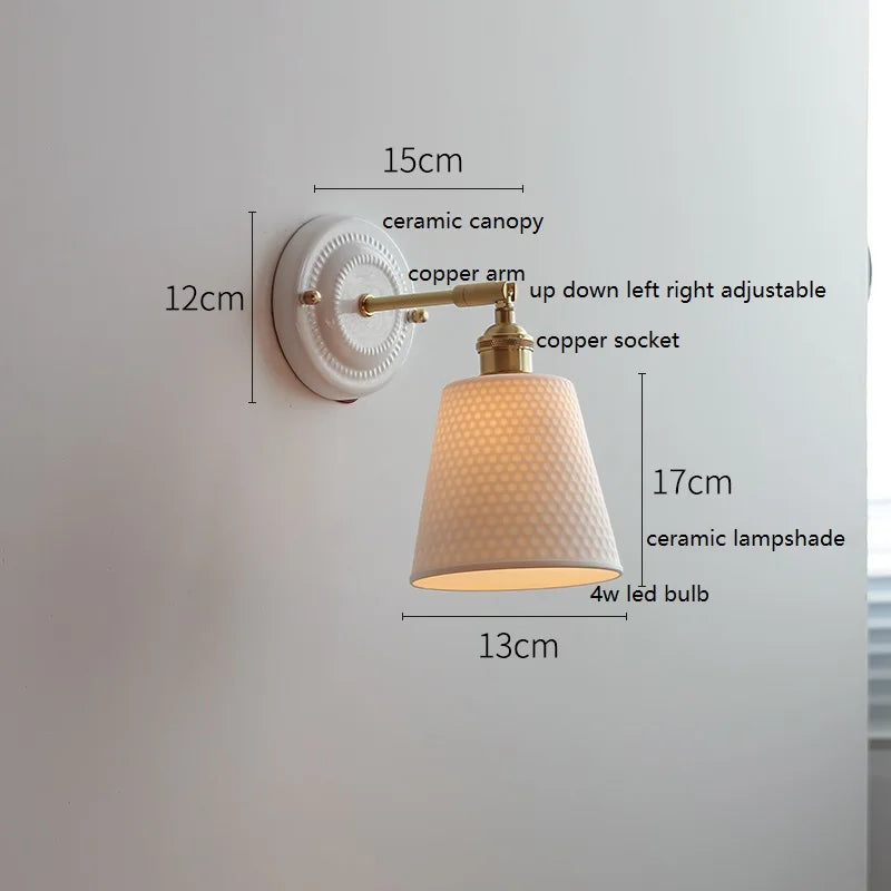 Helnys Ceramic LED Wall Sconce - Copper Arm, Adjustable Pull Chain Switch