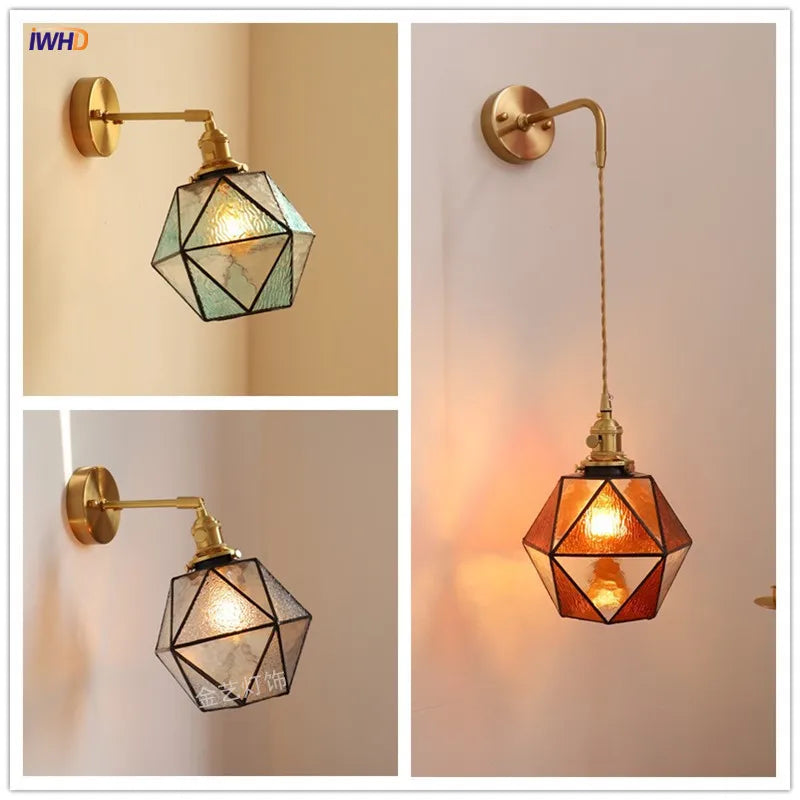 Helnys Copper LED Wall Lights Fixtures Switch Stair Light Glass Wall Lamp Sconce