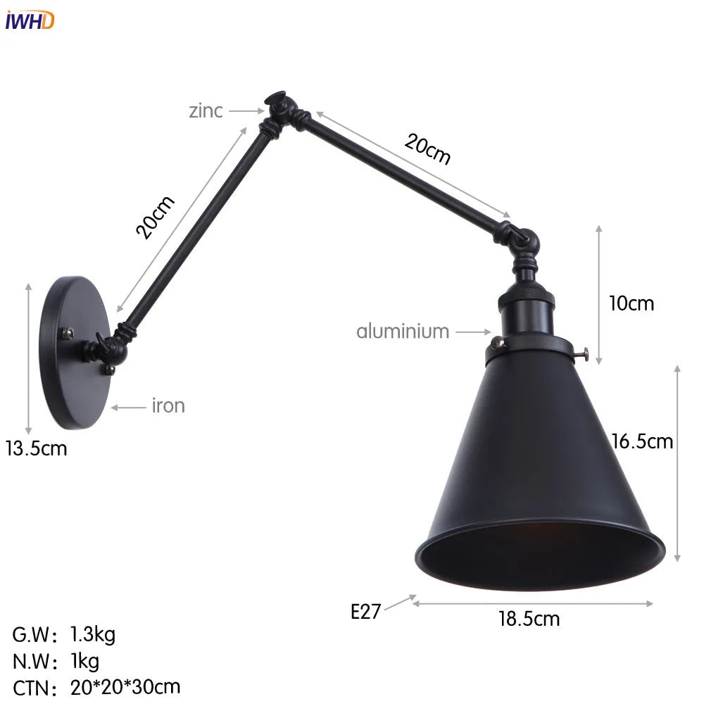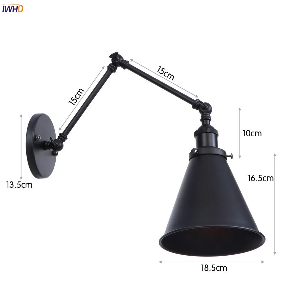 Helnys Gold LED Swing Arm Wall Light - Antique Industrial Decor