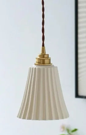 Enhance your living space with the Helnys LED Pull Chain Wall Sconce. This elegant modern wall lamp features a white ceramic lampshade and a copper arm, adding a touch of sophistication to any room in your home.