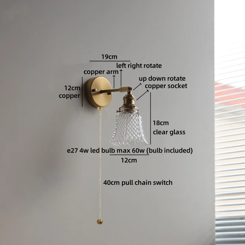 Crafted with high-quality Copper body material, this wall sconce exudes luxury and durability. The elegant design features a stunning Glass shade that creates a mesmerizing lighting effect.