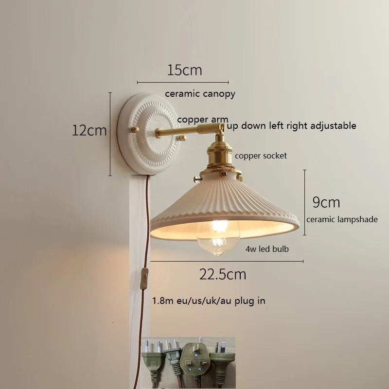 Illuminate your kitchen, dining room, bedroom, foyer, study, or bathroom with this sleek wall sconce. The body of the sconce is made of premium copper, giving it durability and a luxurious look. The ceramic lampshade can be adjusted up, down, left, and right, allowing you to direct the light exactly where you need it.