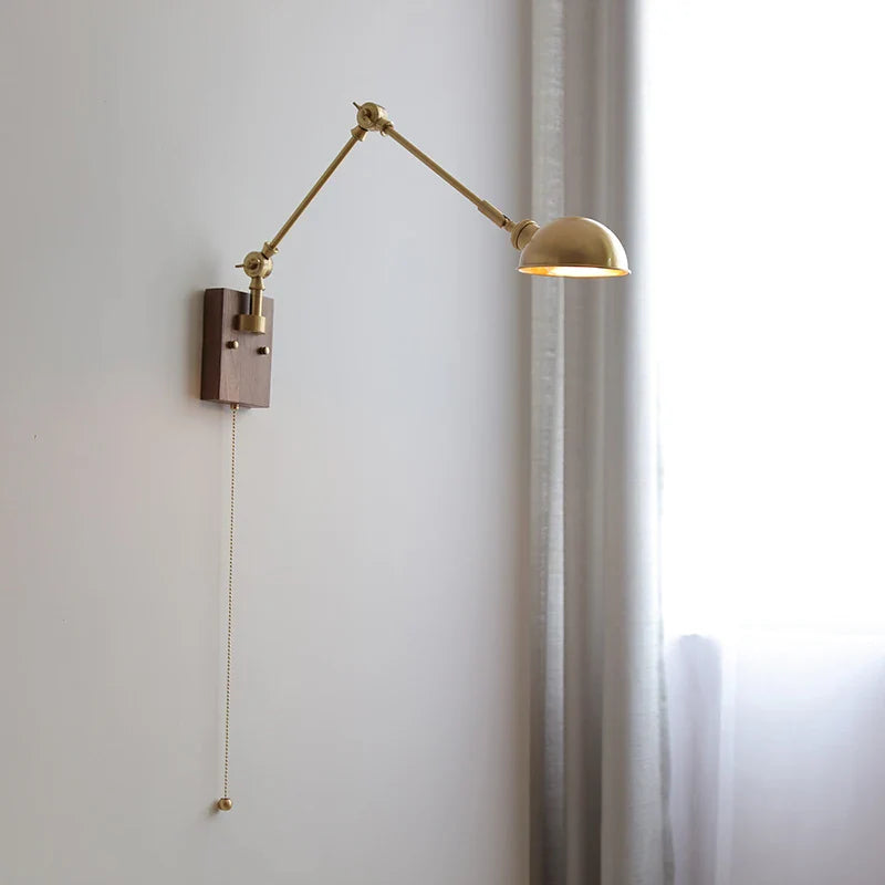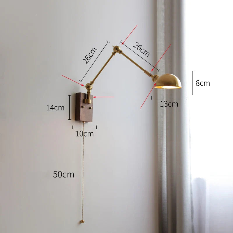Constructed with high-quality copper material, this wall lamp boasts durability and style. The warm gold color tone adds a luxurious feel to any room, creating a cozy and inviting atmosphere. The wooden canopy complements the copper body, adding a natural element to the design.