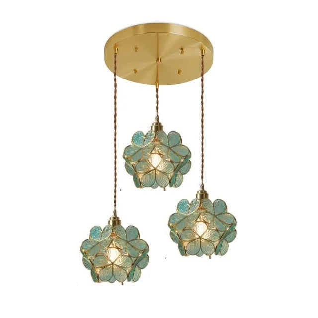 Helnys Nordic Flower Copper Glass Pendant Light Fixture with LED for Bedroom Dining Living Room