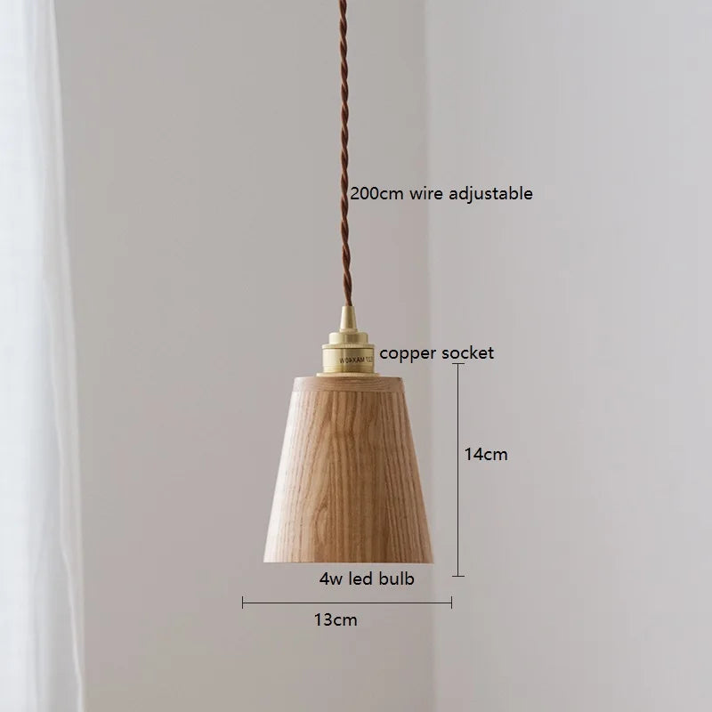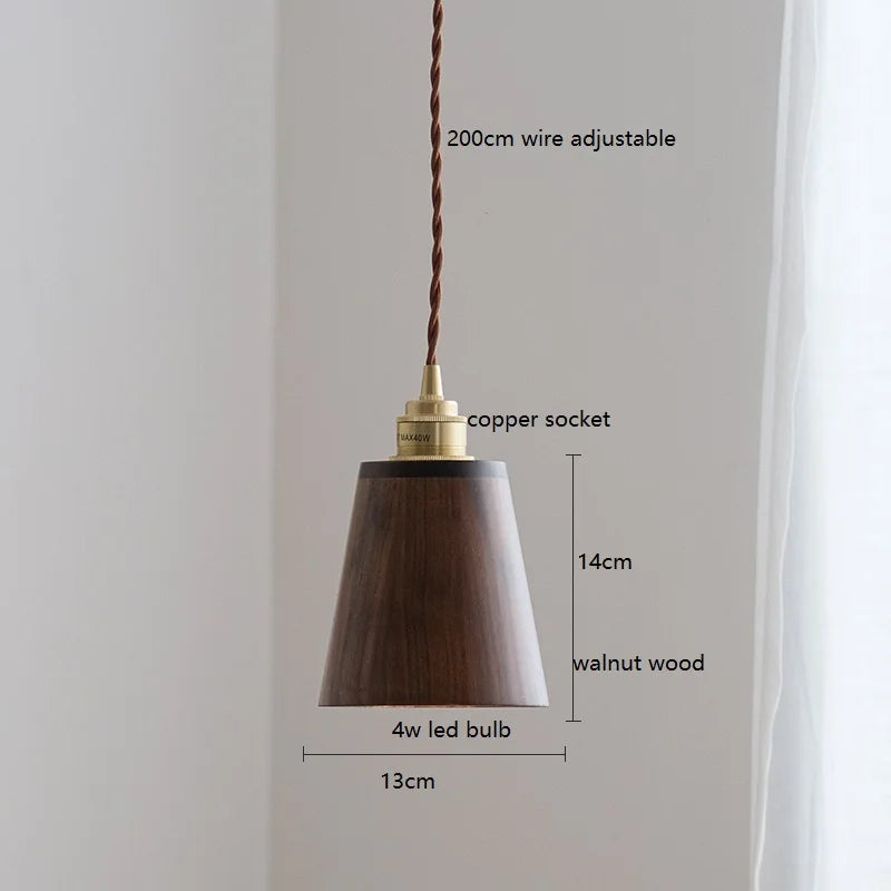 Helnys Nordic Modern Ash Walnut Wood Copper LED Pendant Lights for Home Indoor Decor