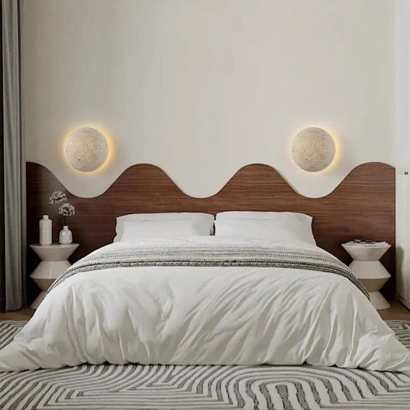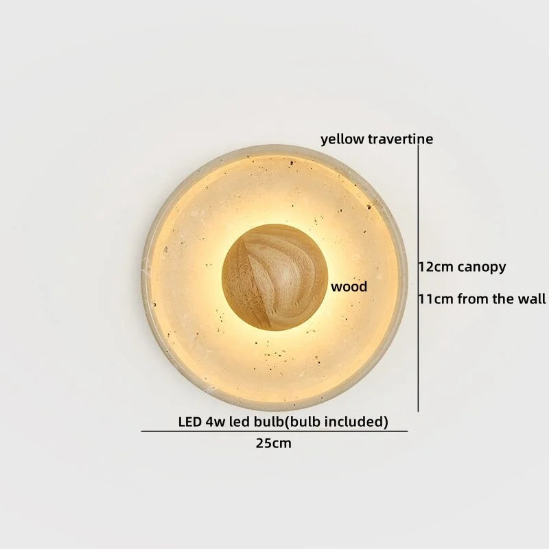 Helnys Stone Yellow Round Wall Light Modern Nordic Bedroom Living Room Lamp
