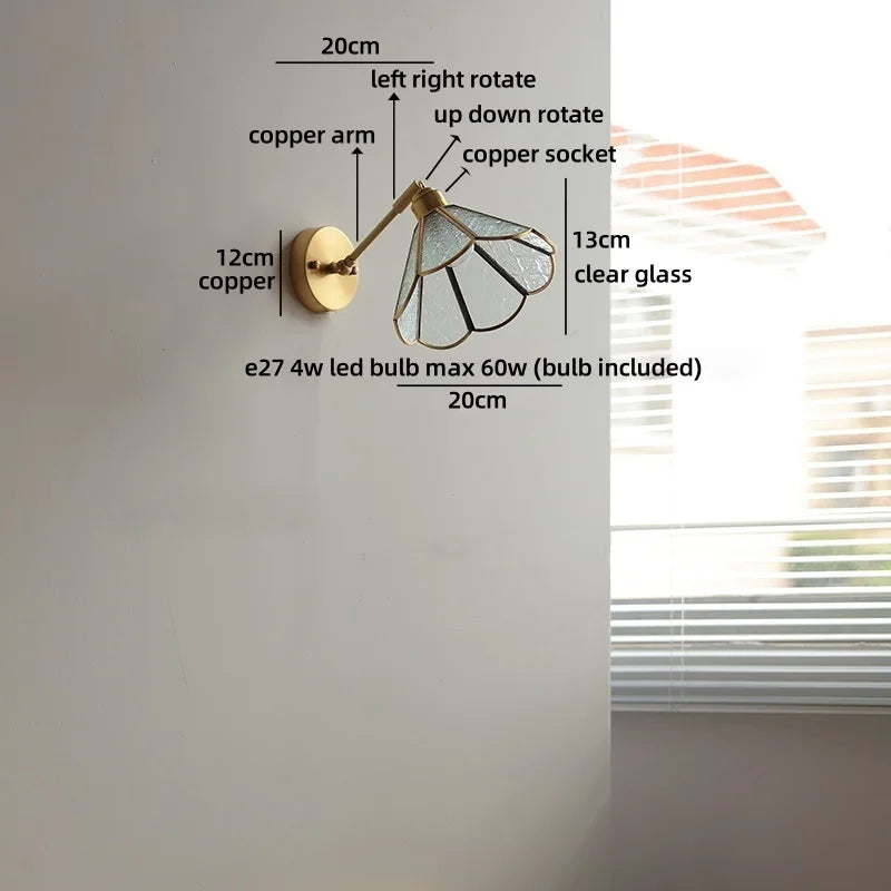 Helnys Vintage Glass LED Wall Lights Up Down Brass Arm Bedside Lamp