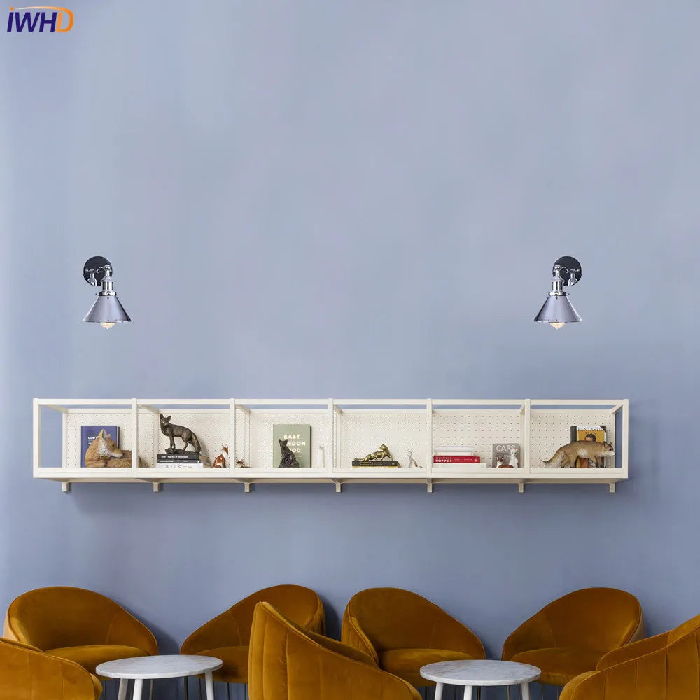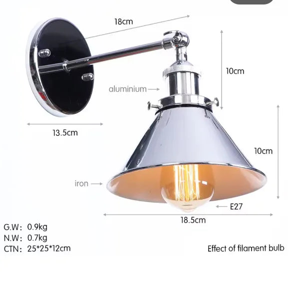 Helnys Vintage Silver Wall Lamp Industrial Sconces Retro Lighting