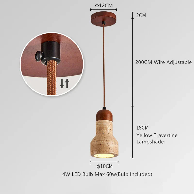 Helnys Vintage Yellow Travertine LED Pendant Light Chandelier Bar Cafe Hanging Lamp