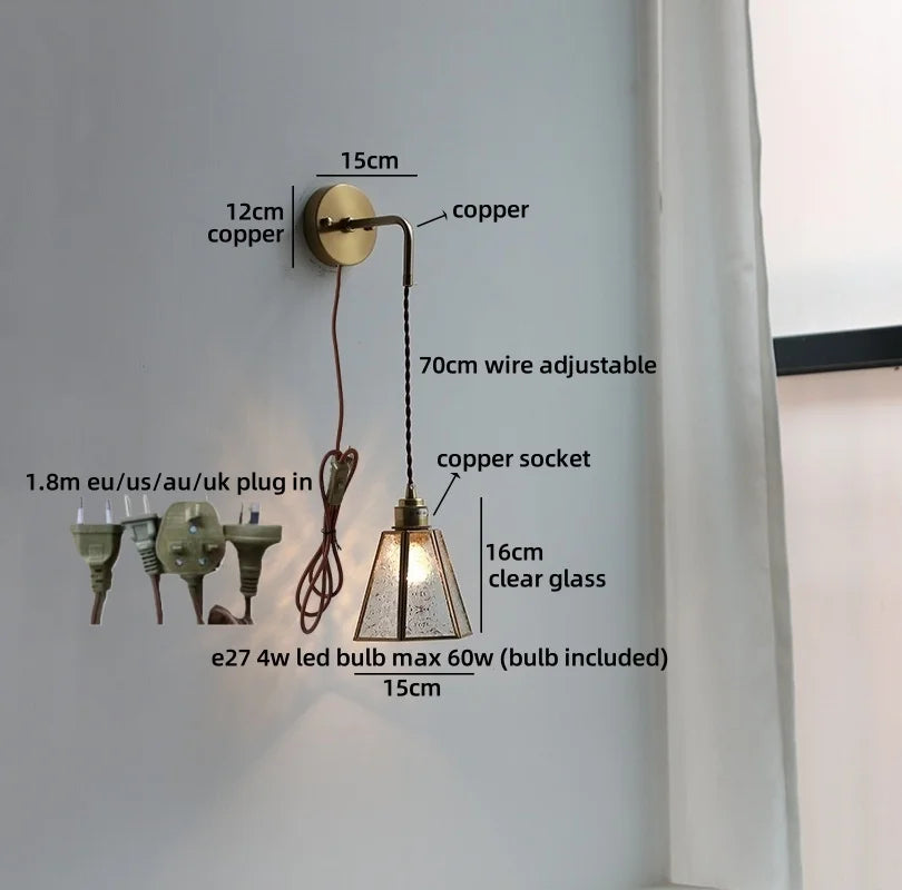 Crafted with high-quality materials, this wall lamp boasts a sleek body made of copper, providing durability and a touch of elegance to any room. The clear glass shade adds a touch of sophistication to your space, creating a warm and inviting ambiance.