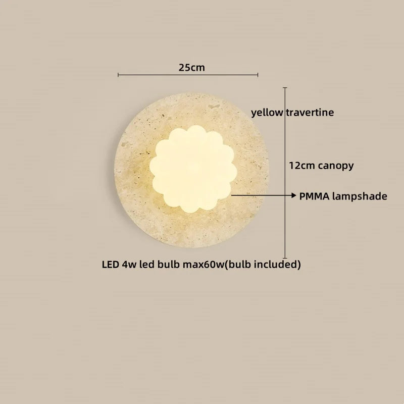 Illuminate your living space with the Helnys Yellow Travertine LED Wall Lamp, a stunning addition to any modern interior. This wall lamp is perfect for various rooms in your home, including the kitchen, dining room, bedroom, foyer, study, or bathroom.